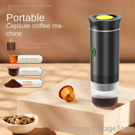 Espressor Portabil 3-in-1 cu Mod Incalzire Apa – Compatibil cu Capsule Nespresso, Dolce Gusto, Tchibo si Cafea Macinata – Ideal pentru Cafea, Espresso si Ciocolata Calda, Negru